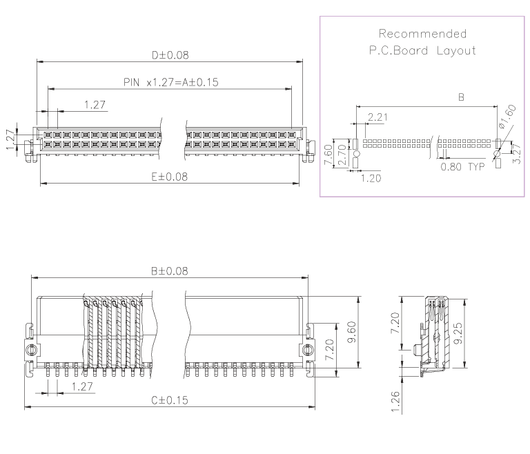 Pitch :1.27 mm / 0.05"Gender :FemaleMount type :S.M.T. R/ALocating peg :With | Up to 8 Gbps