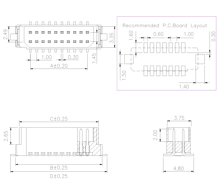 Mount type :S.M.T. | 1.00 x 1.45 mm (0.039" x 0.057")