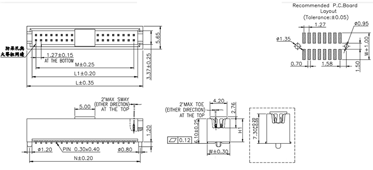 絕緣材料:高溫熱塑性塑料,UL 94V-0 LCP