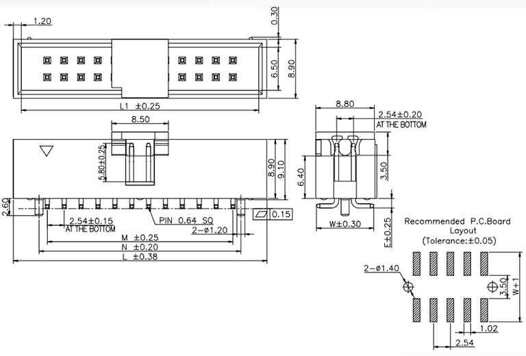 絕緣材料:PBT,尼龍,LCP,UL 94V-0