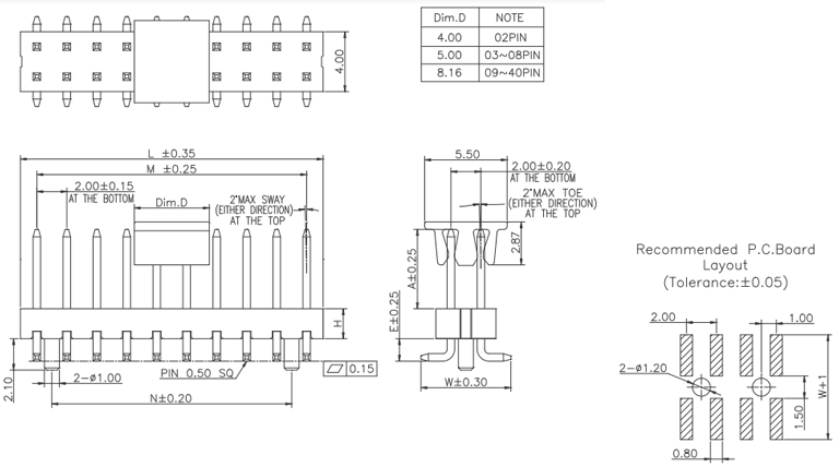 P/H0.8mm 雙排排針 BC211