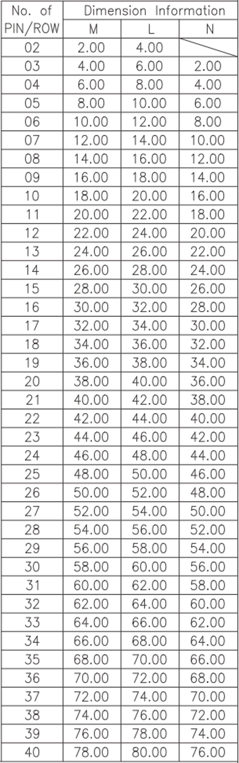 P/H1.0mm 雙排排針 CA201