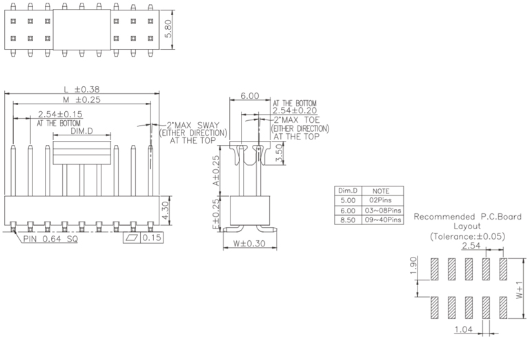 P/H2.54mm 雙排排針 HC210