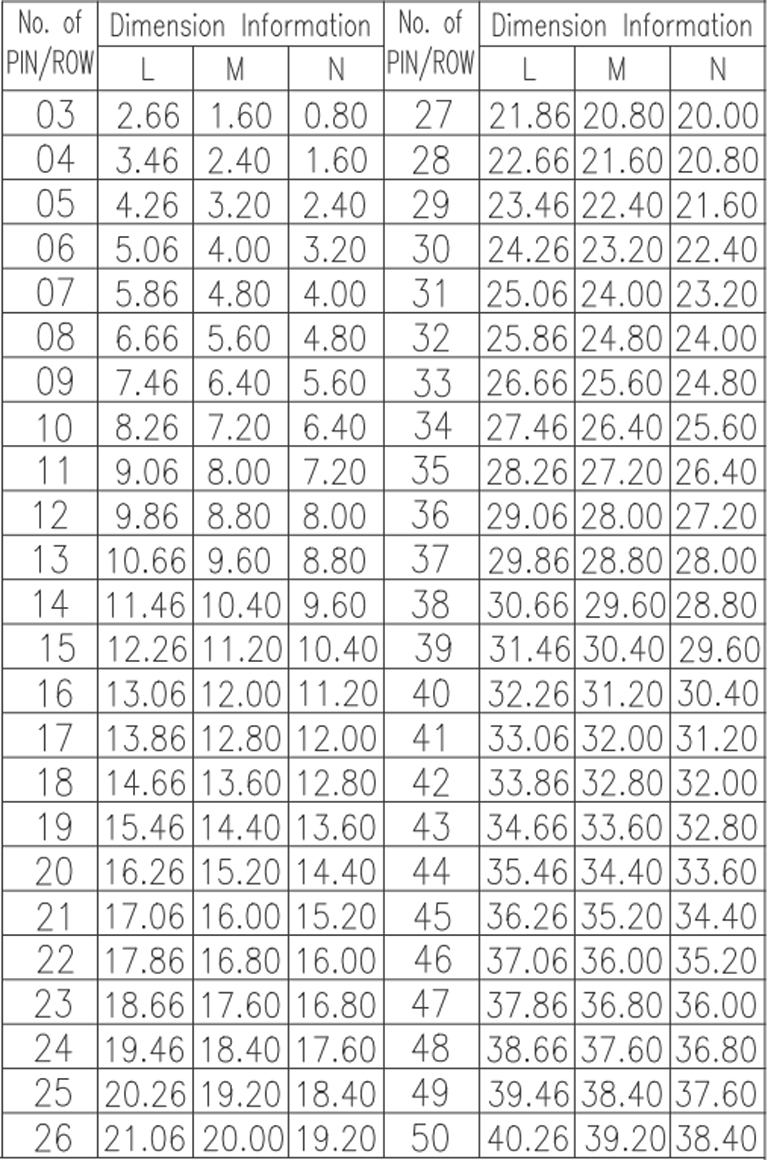 P/H1.0mm 雙排排針 CA202