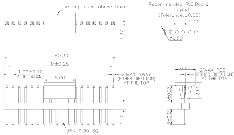 P/H1.0 mm 單排排針 CA101
